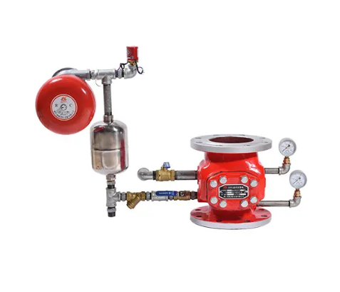 濕式報(bào)警閥是一種單向閥,只允許水流入濕式系統(tǒng)并在規(guī)定壓力流量下驅(qū)動(dòng)配套部件報(bào)警。它通常配合延遲器使用,以防止因供水壓力波動(dòng)、報(bào)警閥滲漏而發(fā)生誤報(bào)警。水流指示器和壓力開關(guān)等配件可以與之組合,形成濕式自動(dòng)噴水滅火系統(tǒng)。