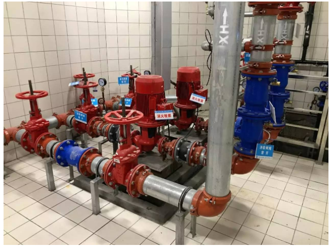 在消防管道轉(zhuǎn)彎處,三通處安裝支吊架,位置準確合理。